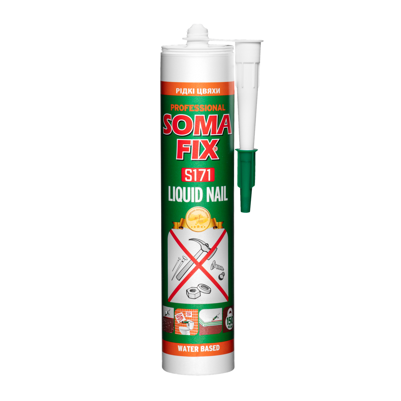 Рідкі цвяхи Soma Fix – багатофункціональний еластичний продукт без запаху, що використовується для монтажу та приклеювання гіпсокартону, кераміки, лінолеуму, паркету, цегляної дошки, пластику, металу та ДСП. Продукт простий у застосуванні, економить робочий час, має високу міцність і надійність.
